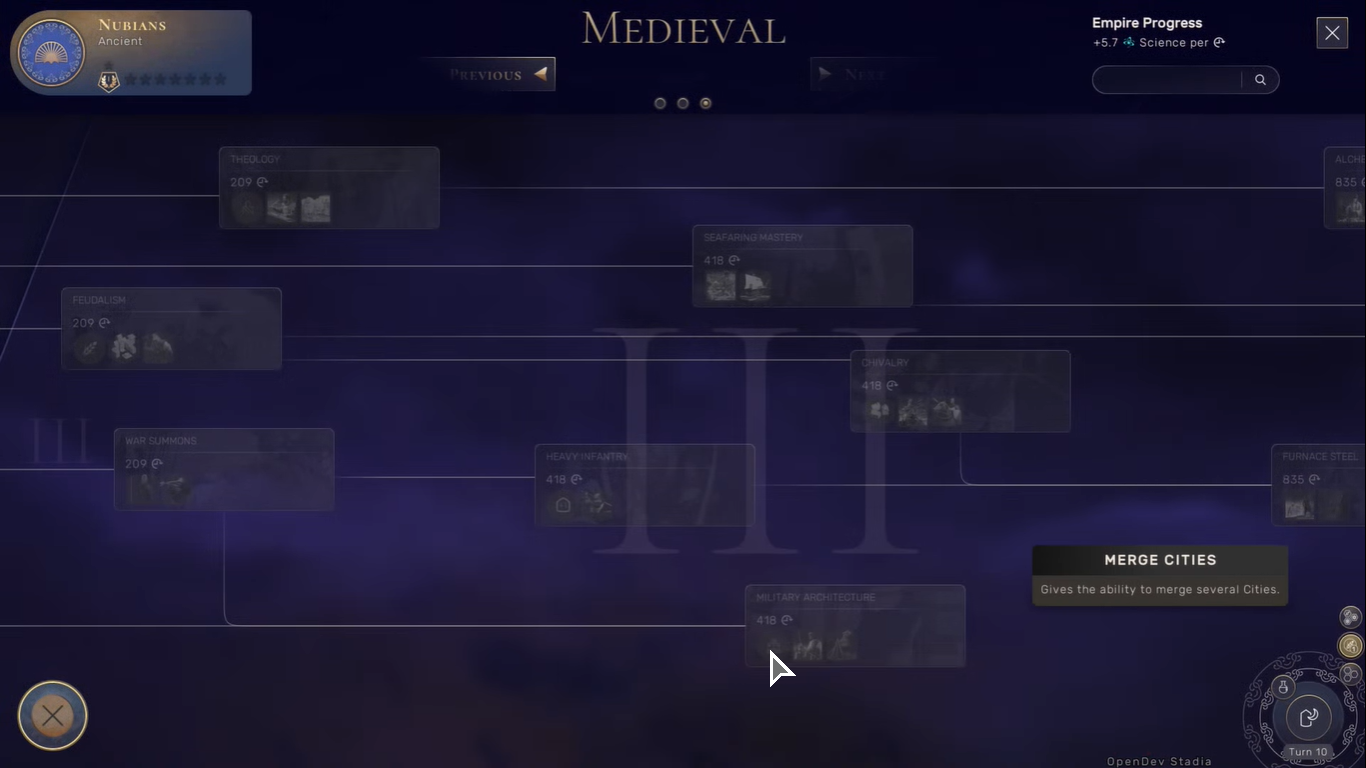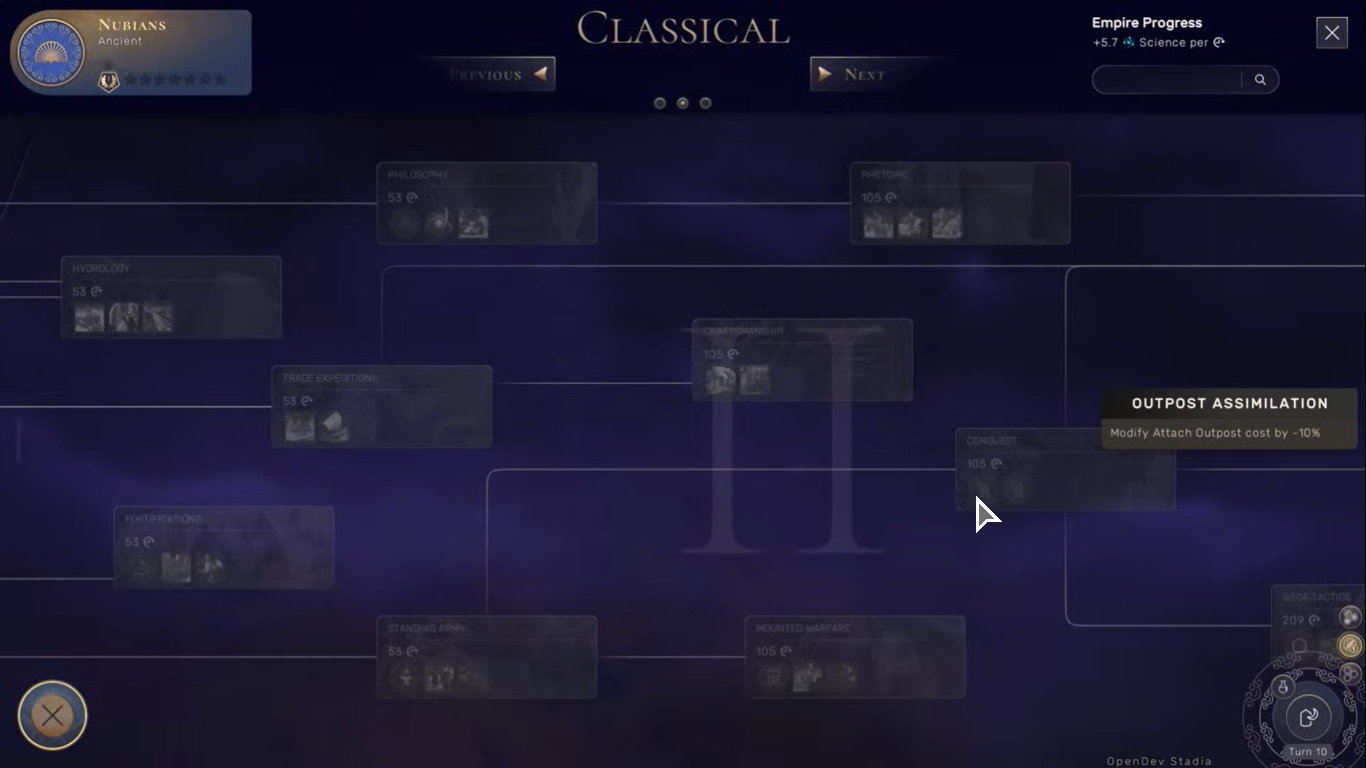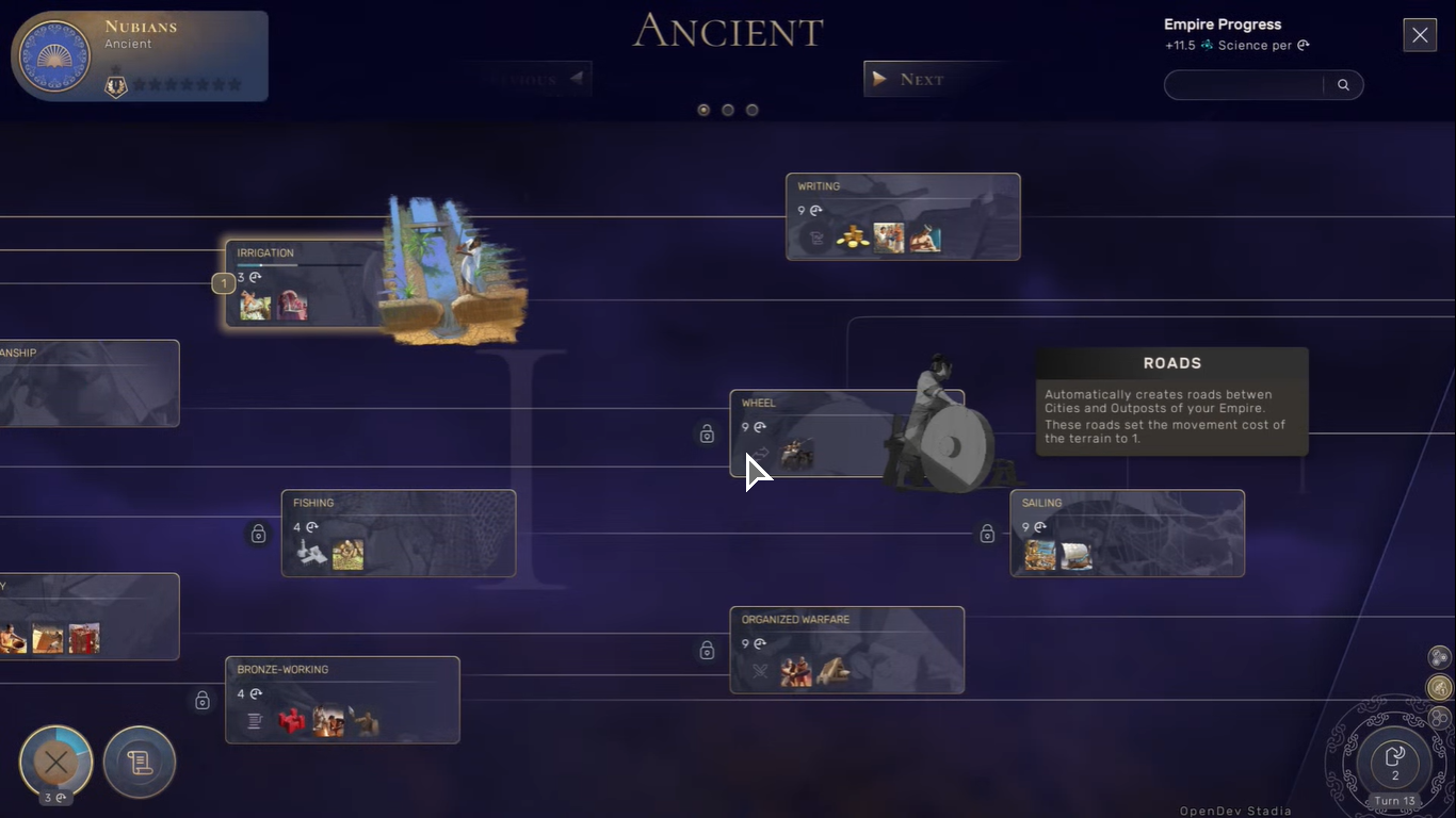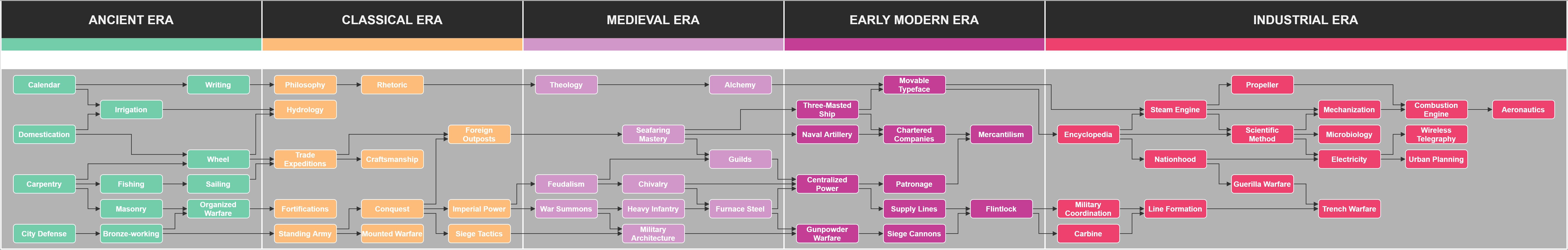 Technologies are arranged on the Tech Tree, and can be researched with Science to unlock new Units, Districts, abilities, and bonuses.